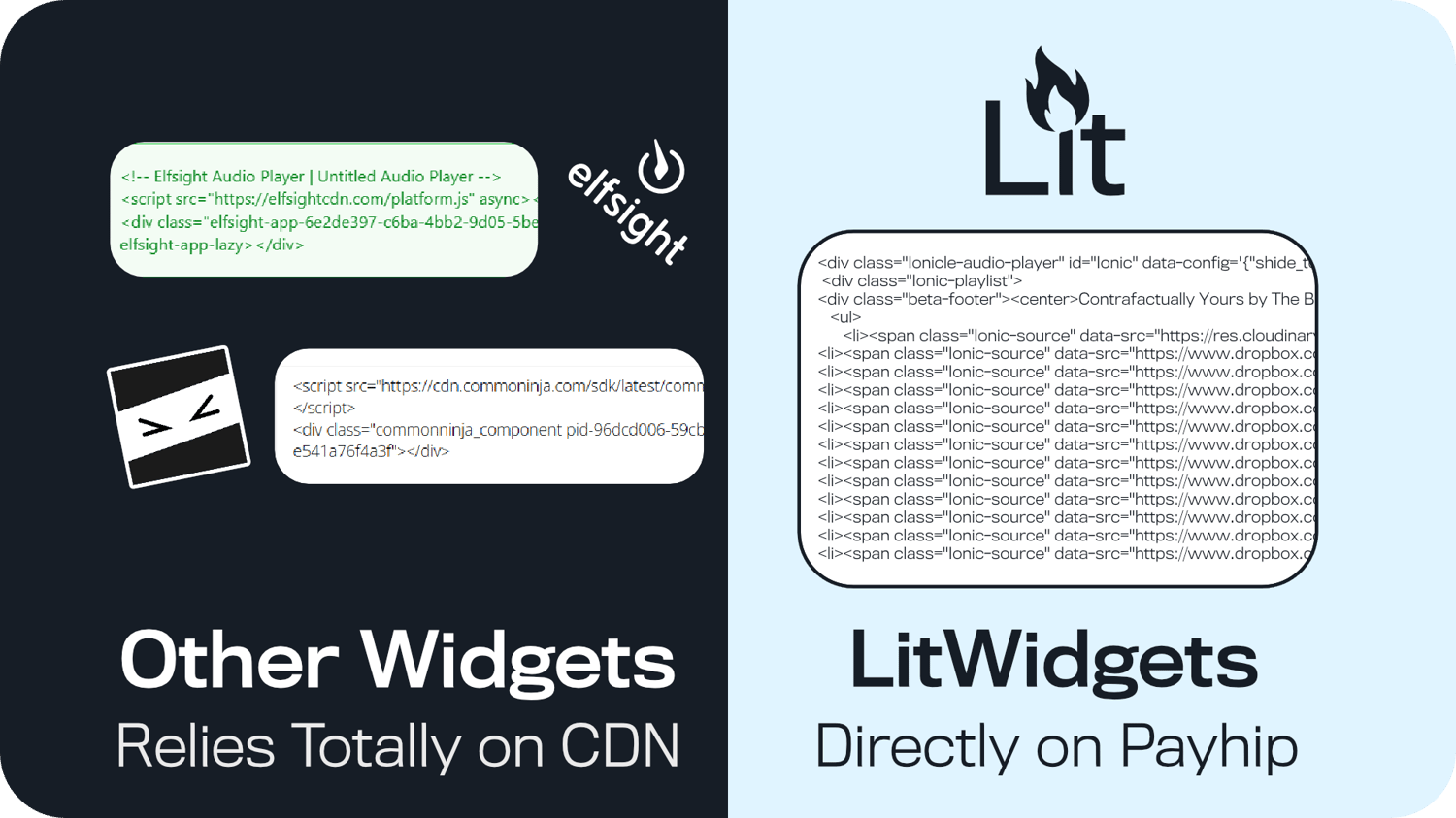 No third party CDN involved you'll get the raw code which you can emded on your Payhip store